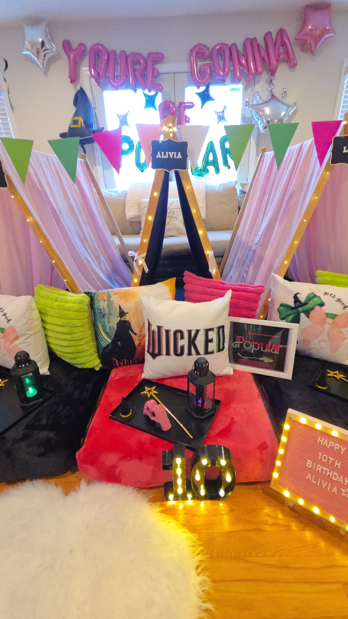 Emotional, cool, and perfectly moody, the Olivia Rodrigo theme is ideal for tweens and teens who love her music and style. Think cozy tents, deep tones, and custom decor that reflects your favorite songs, a trendy slumber party theme for tweens.