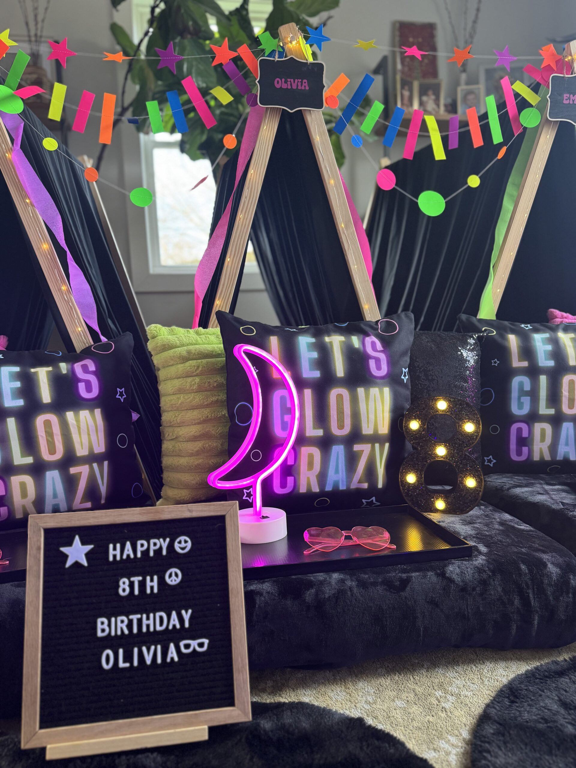A neon wonderland of fun! Perfect for sleepover party themes that glow after dark.