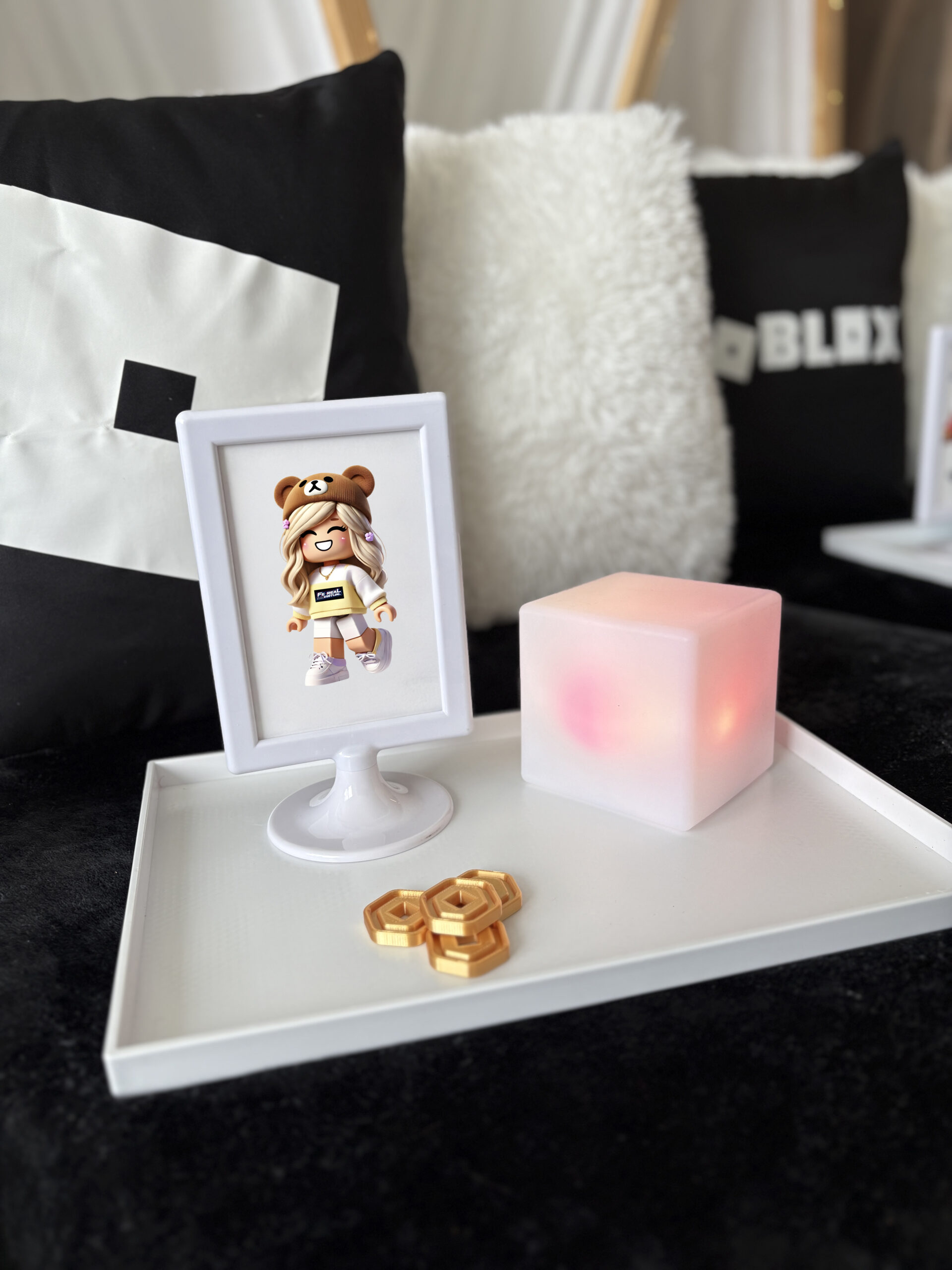 A glow party—elevated. This sleek, tech-inspired setup features LED lighting, metallic accents, and futuristic décor. Designed for gamers, dreamers, and modern trendsetters, it’s a sleepover experience that feels like stepping into the future.
