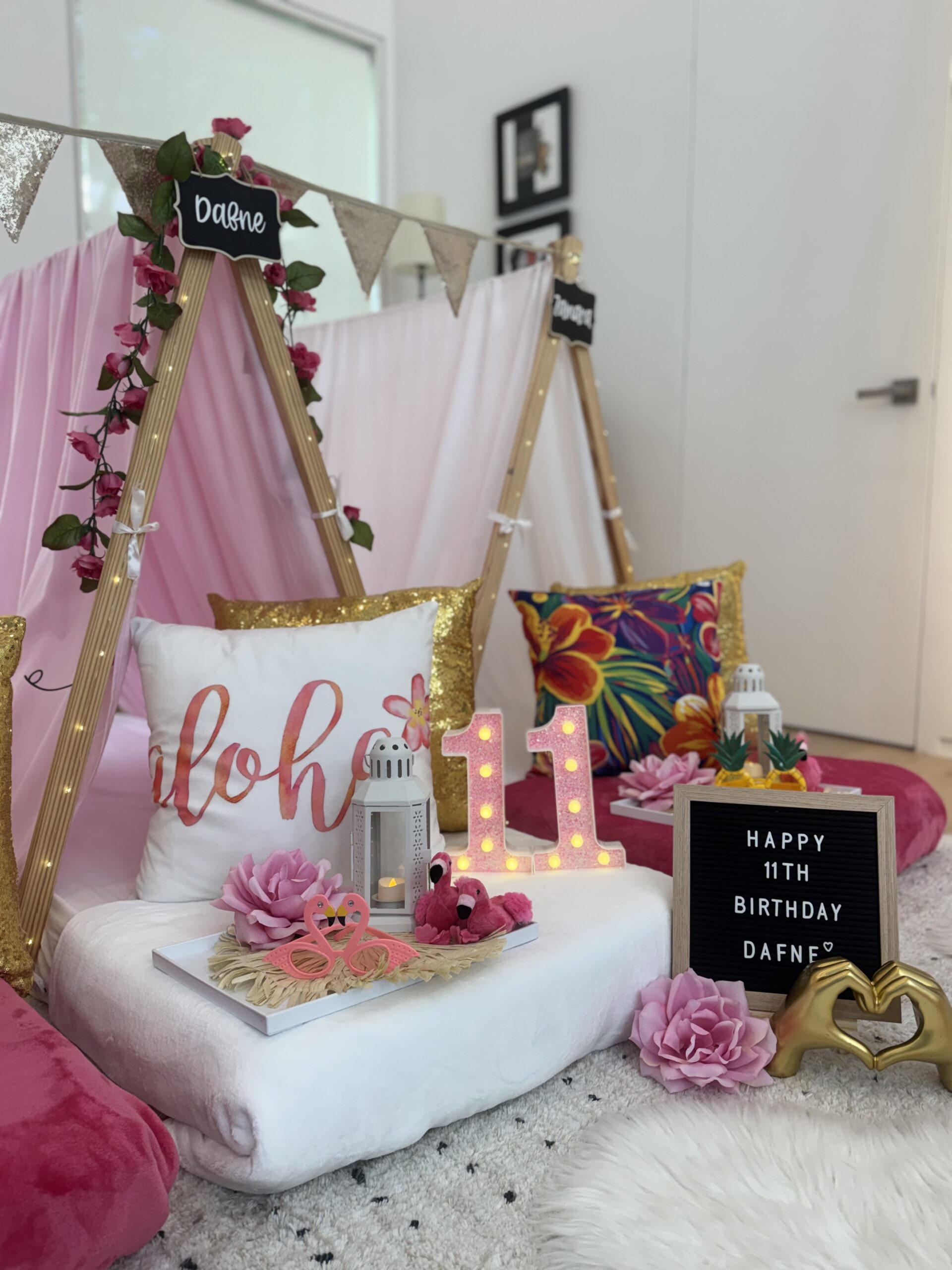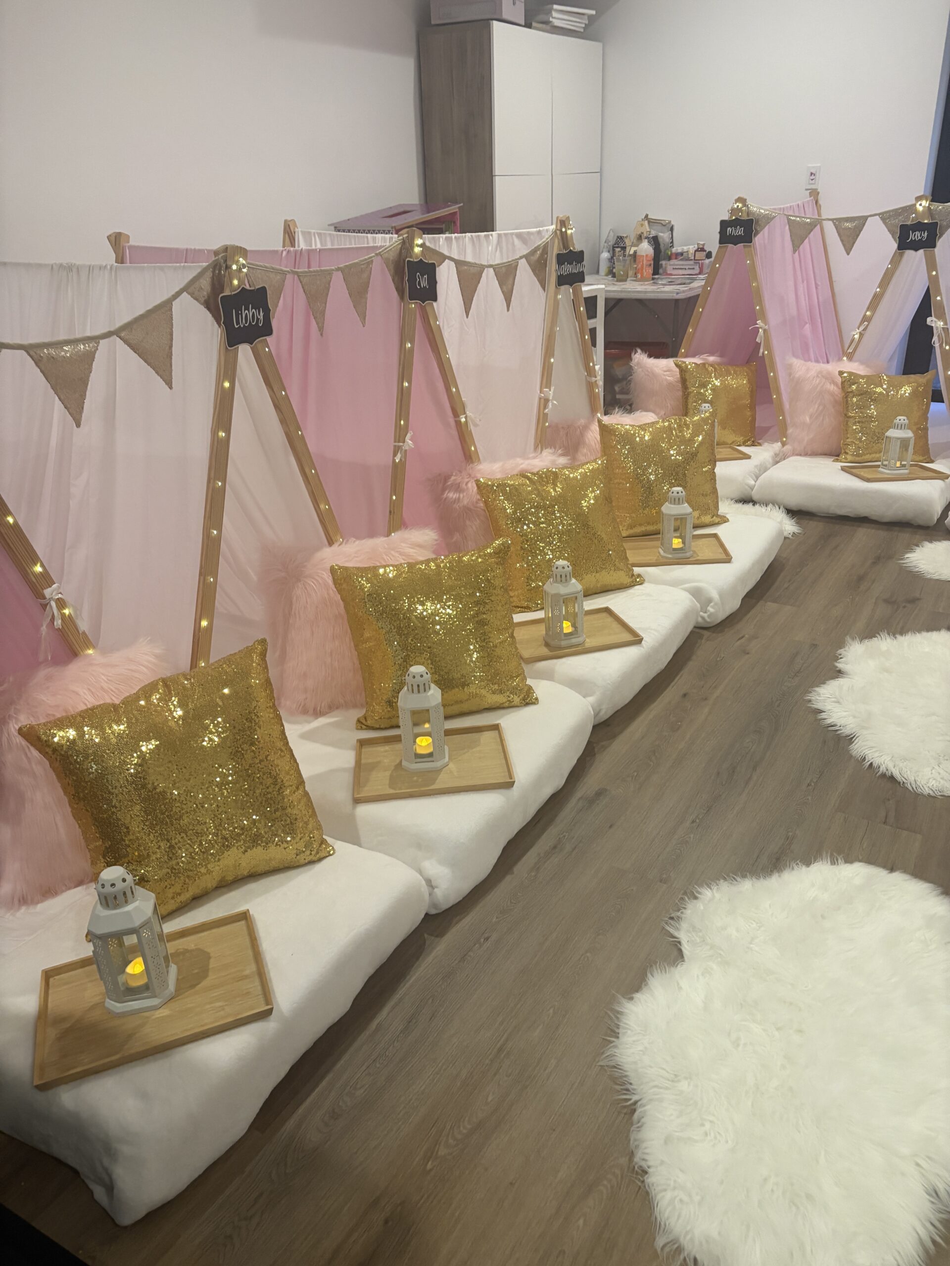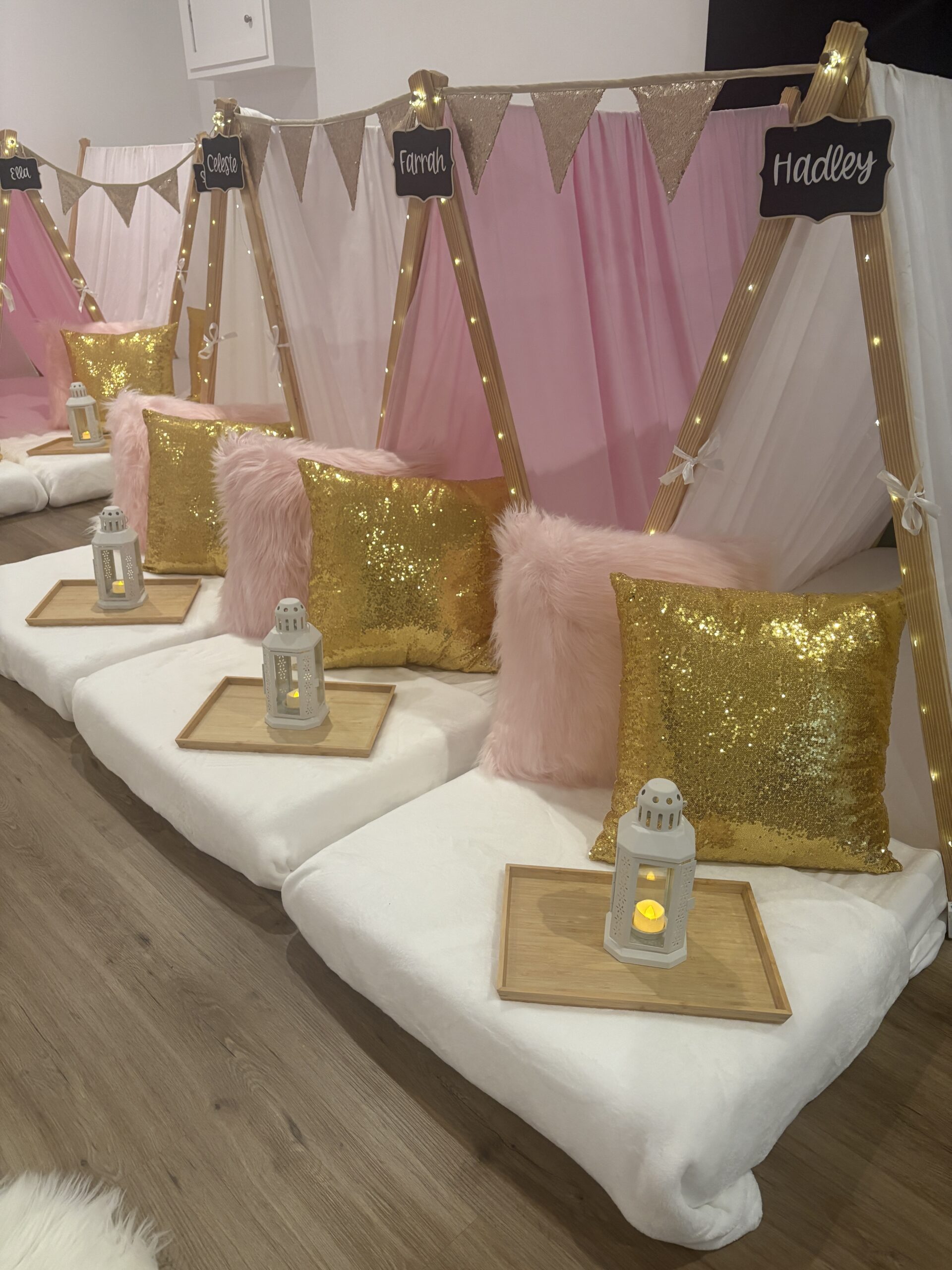 Whether you’re dreaming of a magical enchanted forest, a cozy movie night, or a glamorous spa retreat, we’ve got you covered! Our team is here to ensure your slumber party is a fun-filled adventure tailored to your wishes.
